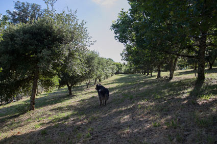 Olympe, notre chienne truffière, veille fièrement sur nos chênes truffiers qui s’enracinent sur un sol propice, |
